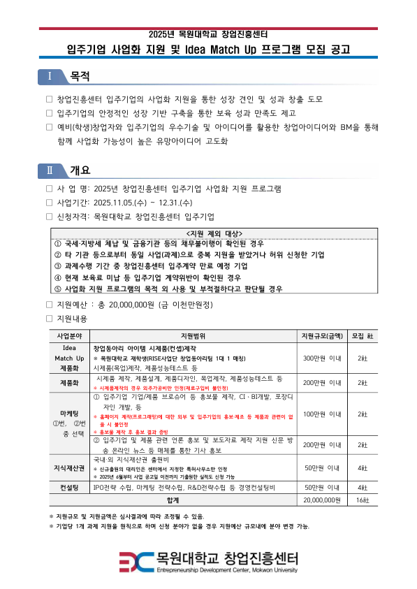 2025년 창업진흥센터 입주기업 사업화 지원 및 Idea Match Up 프로그램 모집 공고.pdf (210.88 KB, DN.5)