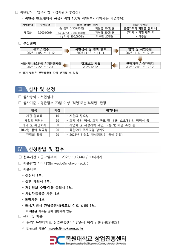 2025년 목원대학교 창업진흥센터 2차 입주기업 모집 공고